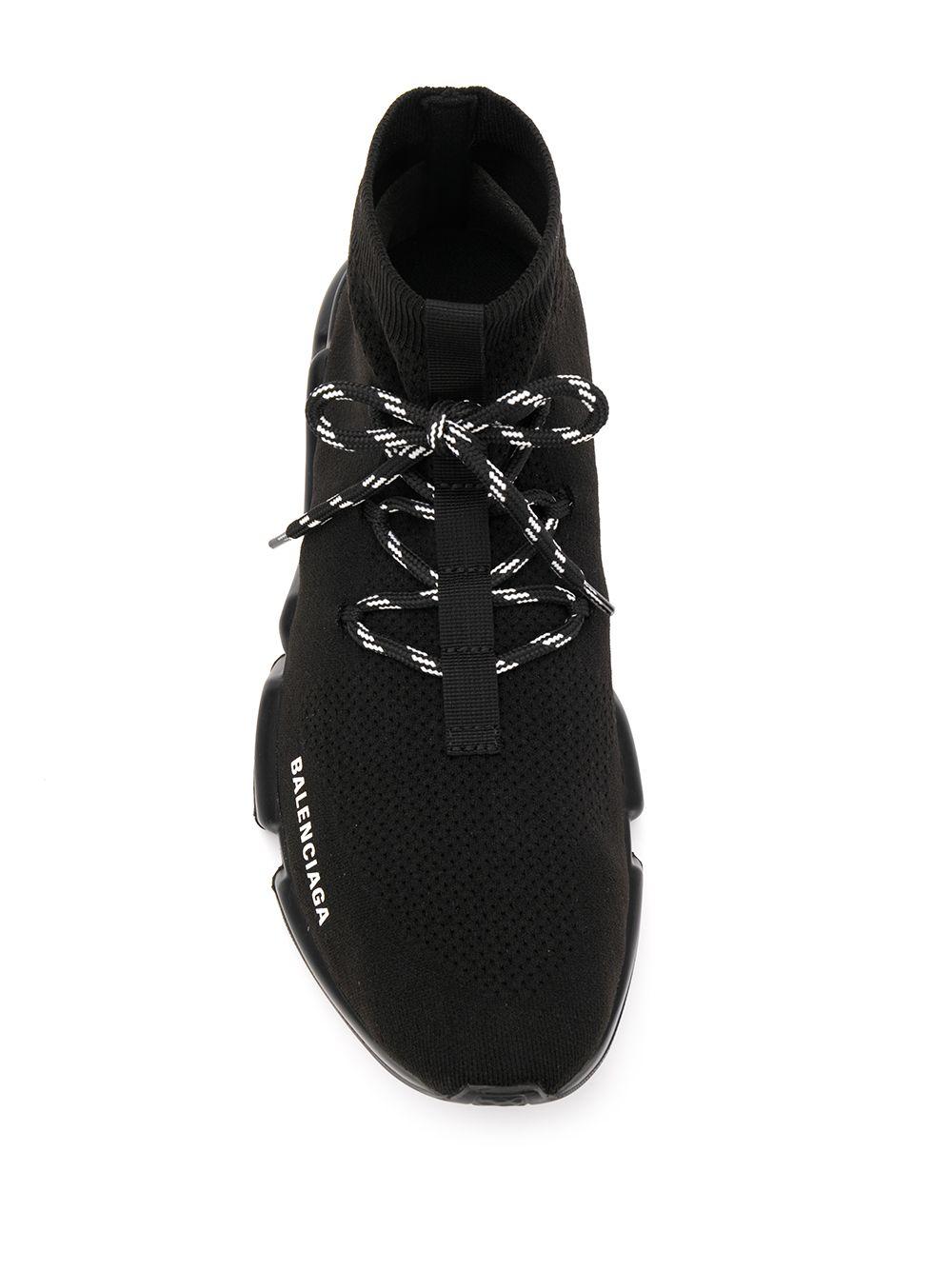 Balenciaga Speed Knit Lace Up Mid Top Trainers In 1000 Black Modesens Speed Laces Balenciaga Mens Knit Sneakers