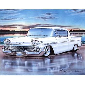 Amazon Com 1958 Chevy Impala 2 Door Hardtop Classic Car Art Print White 11x14 Poster Posters Prints