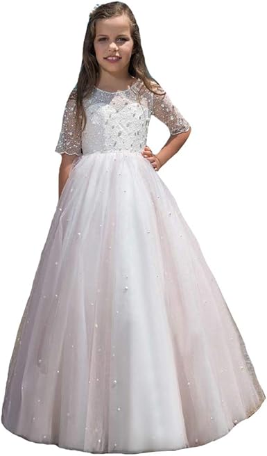 Vestido comunión con cuerpo de crepé marfil y tul marfil superpuesto, escote pico en la espalda, botones forrados, rematado con encaje de tul bordado en cuello, mangas y espalda Falda de muselina organdizada con doble capa de tul superpuesto, una maquillaje y la exterior de tul lunar Lazada de tul maquillaje Totalmente forrado. Hay diferentes estilos, desde el clásico vestido de corte princesa, con falda amplia y cancán, hasta los vestidos de corte recto, que son más sencillos y ligeros También se encuentran los vestidos de fantasía, que están causando furor y se asemejan más a los vestidos de fiesta, con pedrería, volantes y lazos. NNJXD Vestidos Niñas Fiesta,Vestido de Comunion de Niña,Boda de Los Niños de 0 a 8 Años 4,4 de 5 estrellas 18,98.