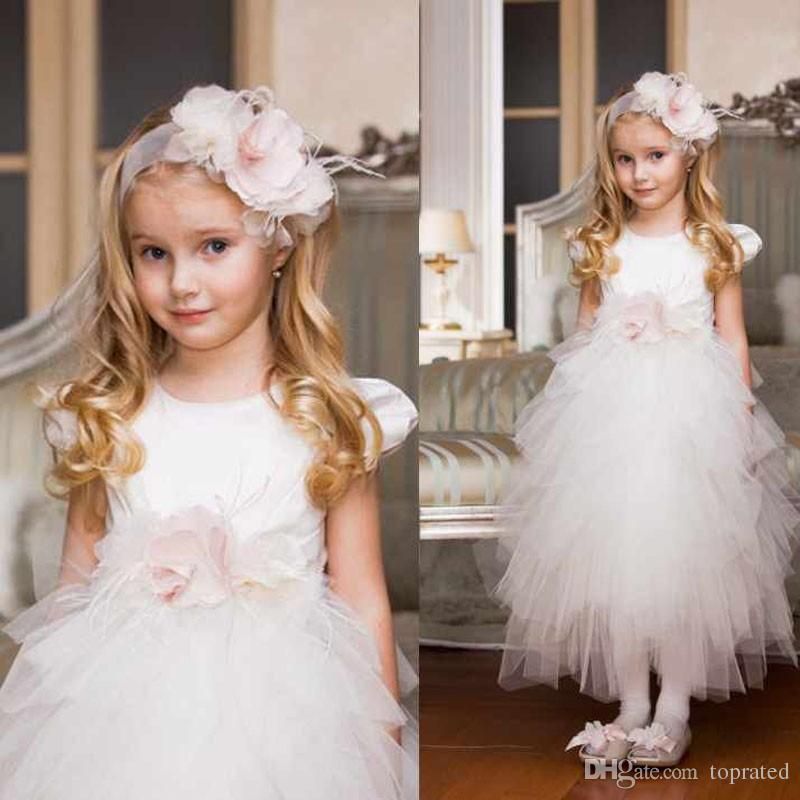 Compre Precioso Tul Boda Cortos Vestidos De Nina De Las Flores De La Manga Con La Pluma Flores Vestidos De Primera Comunion Para Ninas Ninos Partido Formal Vestidos A 57 02 Del