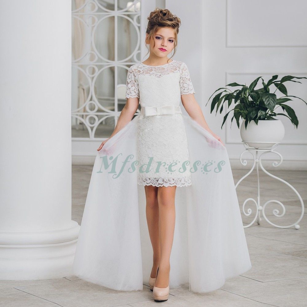 Compre Nueva Moda Vaina De Encaje Corto Vestidos De Nina De Las Flores Con El Tren Desmontable Mangas Cortas Ninas Vestido De Comunion Desfile Kids Prom Vestidos De Noche A 84 72