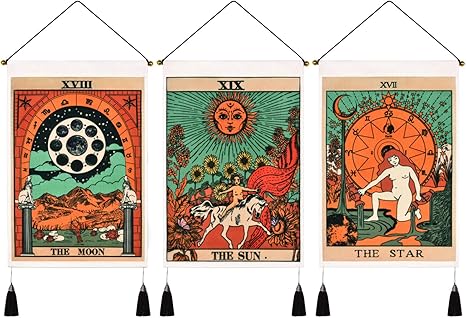 Amazon Com Pack Of 3 Tarot Tapestry The Sun The Moon The Star Tarot Cards Tapestries Medieval Europe Tapestry Mysterious Tapestry Wall Hanging For Room 13 8 X 19 7 Inches Everything Else