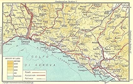 Riviera Di Levante Genova Genoa La Spezia 1953 Mapa Antiguo Diseno De Mapa Antiguo Vintage Map Mapas De Italia Amazon Es Hogar