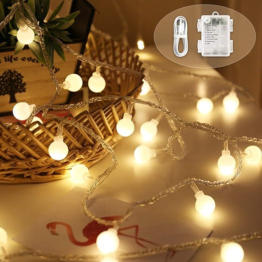 Guirnalda De Luces Bolas Blancas Con Enchufe Sin Pilas