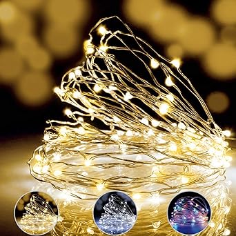 Salcar Guirnalda De Luces Funciona Con Pilas Blanco Calido Luz Plata Alambre Cadenas 10 M 100 Ledes Para Dormitorio Navidad Celebracion Boda Decoracion Amazon Es Iluminacion
