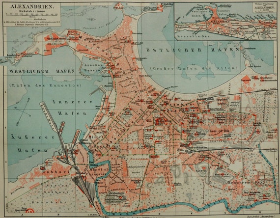Antiguo Mapa De Alejandria Egipto 1900 Vintage Mapa Vintage Etsy