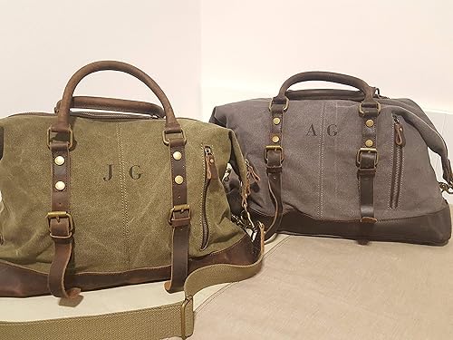 Meri Custom De Cuero Y Lona Para Hombre O Mujer Bolso De Viaje Travel Duffle Noche Fin De Semana Satchel Totes Bolsa Bolsos Iniciales Nombre Personalizados Amazon Es Handmade