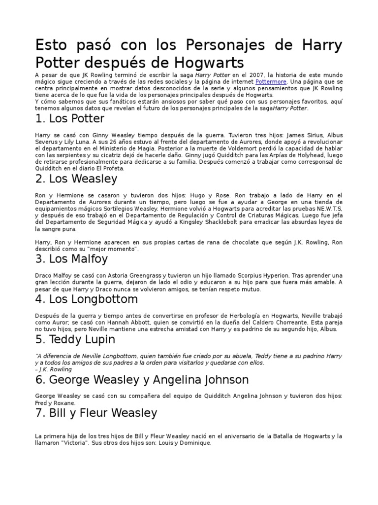 Esto Paso Con Los Personajes De Harry Potter Despues De Hogwarts J K Rowling Mitologia Artificial