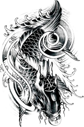 Amazon Com Tafly Men S Black Koi Carp Fish Arm Leg Tattoo Temporary Tattoos Transfer Stickers Waterproof Body Art Beauty