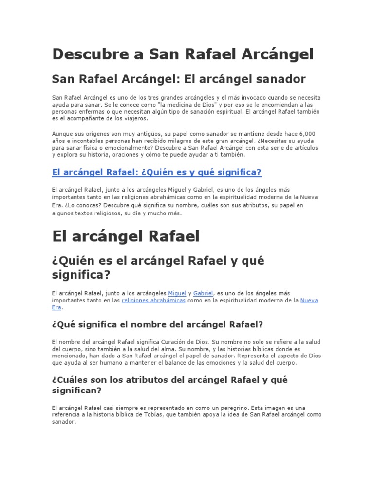 Oracion A San Rafael Arcangel Quien Fue Historia Dia Y Mas