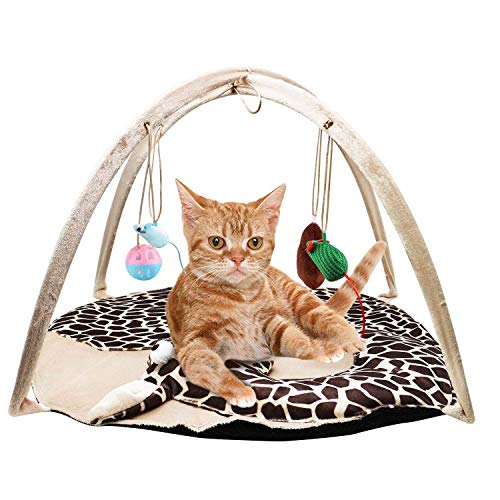 Vamei Juguetes Para Gatos Cat Play Mat Bed Gato Juguete Con 4 Juguetes Colgantes Bell Balls Crinkle Toy Para Gatos Gatito Regalos Para Gatos