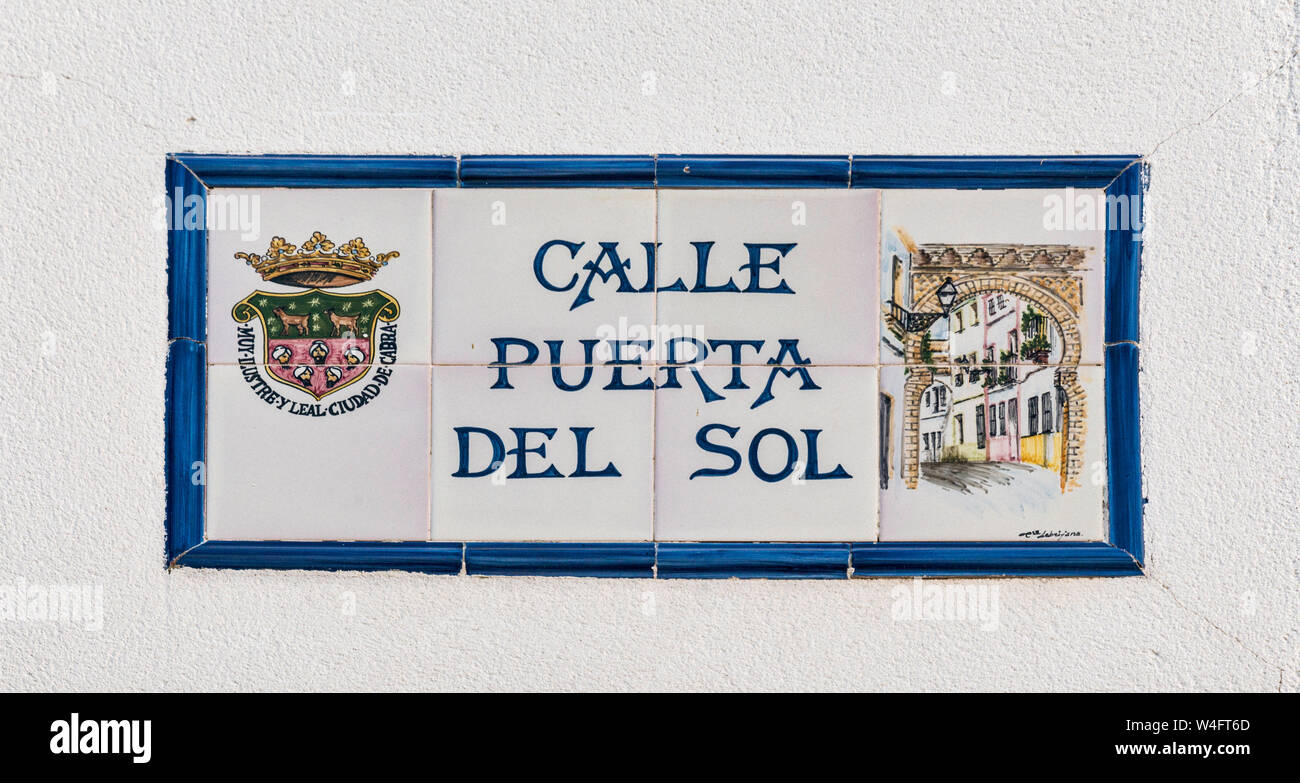 El Nombre De La Calle Signo De Mosaico En La Calle Puerta Del Sol El Callejon En Cabra Provincia De Cordoba Andalucia Espana Fotografia De Stock Alamy