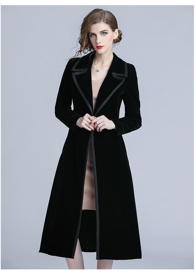 Compre 19 Otono Invierno Terciopelo Trench Coat Mujeres Abrigo Mujer Largo Elegante Muesca Outwear Abrigo Femenino Slim Black Cardigan Trench A 39 31 Del Xiongstore Dhgate Com