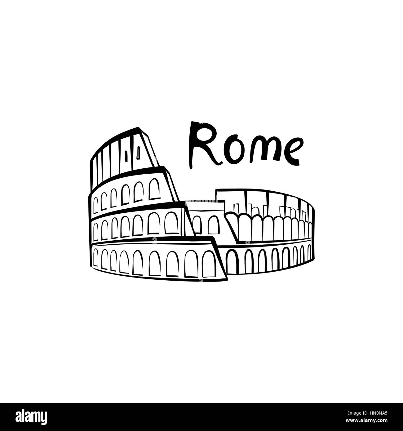 Coliseo En Roma Italia Senal De Coliseum Dibujado A Mano Ilustracion Paisaje De La Ciudad De Roma Ilustraciones Vectoriales Clip Art Vectorizado Libre De Derechos Image