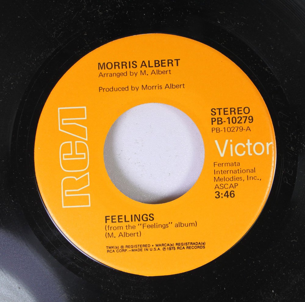 1975 Morris Albert " Feelings " 45rpm RCA Label #5 Condition is "Used" Shipped with USPS Media Mail Slight blemish on durface Record sounds great Comes in original sleeve. There seems to be a miscommunication here somewhere The CD says "Morris Albert" and "Feelings" and "Original Version" on it, but it is none of those The list of tracks Amazon has does not correspond at all with what is on the actual CD It says Morris arranged, directed, and mixed these tracks, but he certainly did not sing any of them. About Press Copyright Contact us Creators Advertise Developers Terms Privacy Policy & Safety How YouTube works Test new features Press Copyright Contact us Creators.