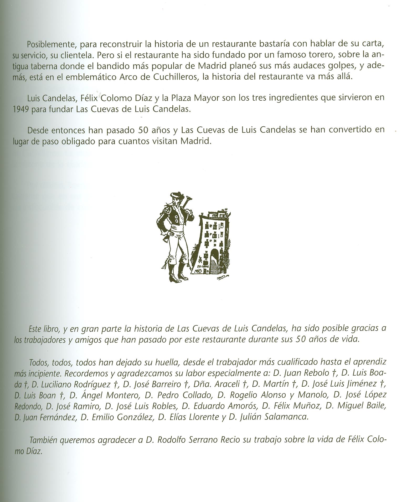 “Las Cuevas de Luis Candelas The dream of a bullfighter” This book pays tribute to the historical figure of Luis Candelas, the most famous bandit in Madrid, and to Mr Félix Colomo Díaz, famed bullfighter and founder of this restaurant. Son Las Cuevas de Luis Candelas y lo podréis reconocer fácilmente por el bandolero que se encuentra enclavado en su entrada El gran atractivo de este lugar es la historia que alberga y es que, como su nombre indica, en este sitio, casi excavado en las entrañas de la Plaza Mayor, fue un habitual el bandolero más famoso de Madrid. Personas que se llaman Las Cuevas De Luis Candelas Las Cuevas Busca a tus amigos en Facebook Inicia sesión o regístrate en Facebook para conectarte con amigos, familiares y personas que conoces.