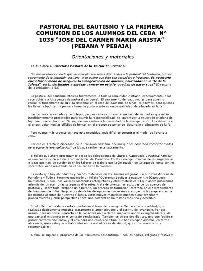 Pastoral Del Bautismo Y La Primera Comunion De Los Alumnos Del Ceba N Bautismo Fe
