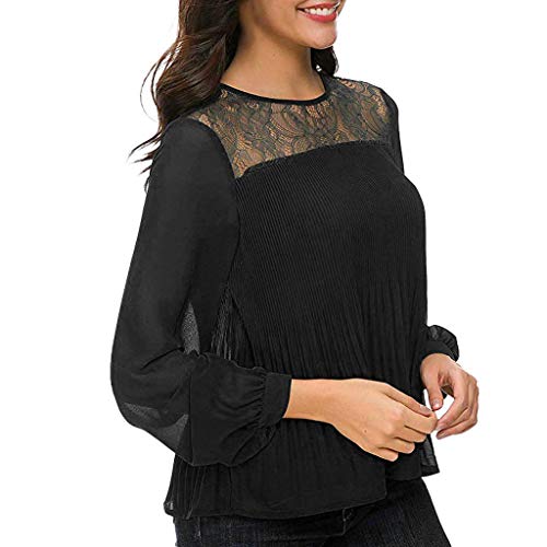 Mujer Elegantes Blusas Con Encaje Labor De Retazos Manga Larga Camisa De Vestir Amazon Es Ropa Y Accesorios