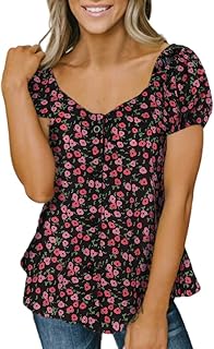 Blusa Con Estampado De Mujer Meibax Blusa Plisada Mujer Camisa Cuello En V Mangas Cortas Chaleco Mujer Vestir Invierno Deporte