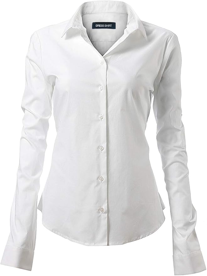 Button Down Shirts For Women Long Sleeve Fitted Uniform Dress Shirt And Blouses Work Top Us Size Xxs 6 White At Amazon Women S Clothing Store