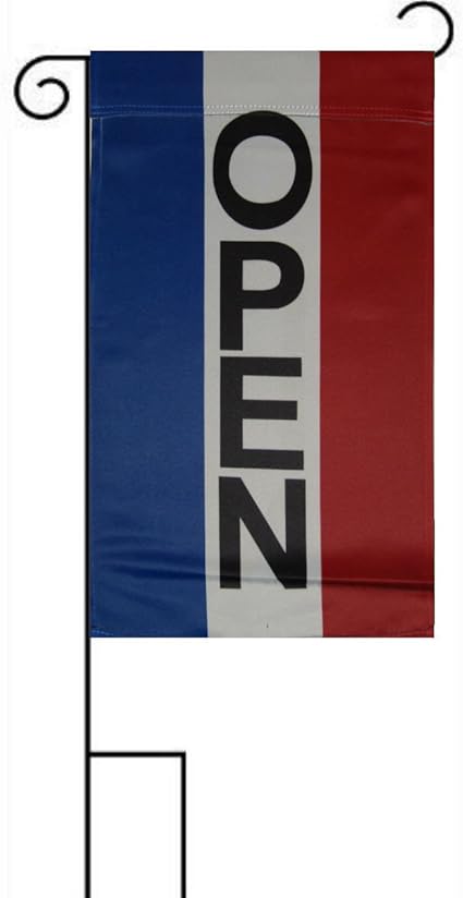 Amazon Com 12 X 18 12 X18 Publicidad Abierta Color Rojo Y Blanco Azul W Jardin Stand De Manga Vertical Bandera Jardin Y Exteriores