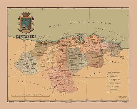 Amazon Com Mapas Del Ultimo Mapa Internacional Espana Santander 1900 Martine 1904 28 76 X 23 Home Kitchen
