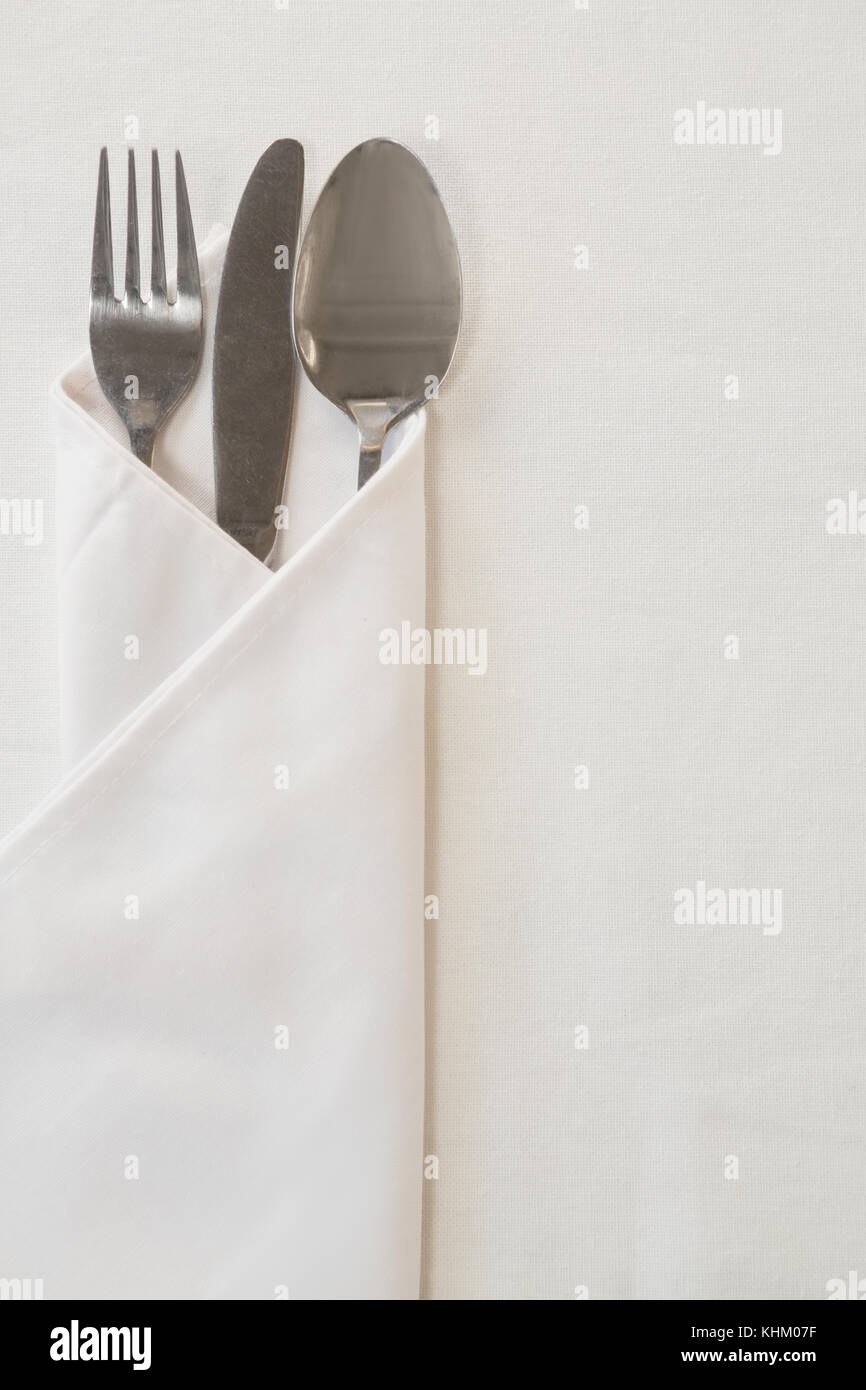 Close Up Of Spoon Knife And Fork Wrapped In A Napkin Stock Photo Alamy