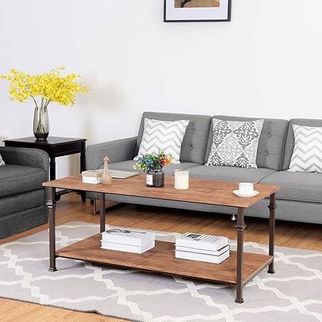 A twotiered coffee table requires special attention The bottom shelf of a coffee table can be simpler than the display on the top of the table But the lower tier still needs balance, composition, and scale Keep the style of both surfaces similar, but do not duplicate it. Round tables are easy to move around while square tables pair well with sectionals Keep your space clutterfree and stow away magazines, books and essentials with storage coffee tables If you have a material of choice, look through a wide range of tables in different materials like marble, glass, wood, and metal. Bourbon 46 in Cherry Large Rectangle Wood Coffee Table with Shelf Simple, Solid, Stylish the Bourbon Foundry Simple, Solid, Stylish the Bourbon Foundry Collection by OneSpace brings to your home that rustic industrious vibe youve been looking for Reminiscent of the sturdy work of a blacksmith or cooper, these pieces feature a thick tabletop, banded with black metal frame.
