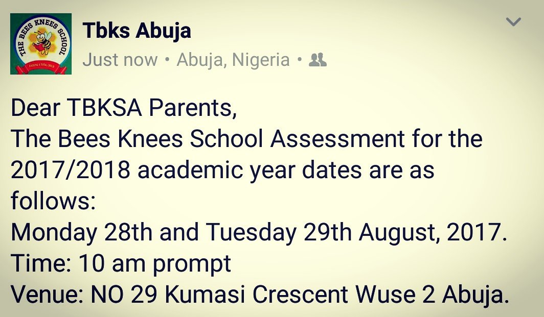 The Bees Knees School Abuja by Mr A We started out as a day care and have progressively grown to have Arguably one of the best preschools in Abuja, where hands on and experiential learning is effectively practiced with a lot of success stories to show for it(4 year old fluent and ardent readers). Jobs at Bee Knees School for Teachers in Abuja The Bees Knees School Abuja is a coeducational school located in the heart of Abuja We are a family oriented school with over 0 pupils The Bees Knees School was founded on the 12th of July, 10The school started as a Daycare and was formerly known. Don't be told, come see for yourself @ No 29 Kumasi crescent, Wuse II, Abuja.