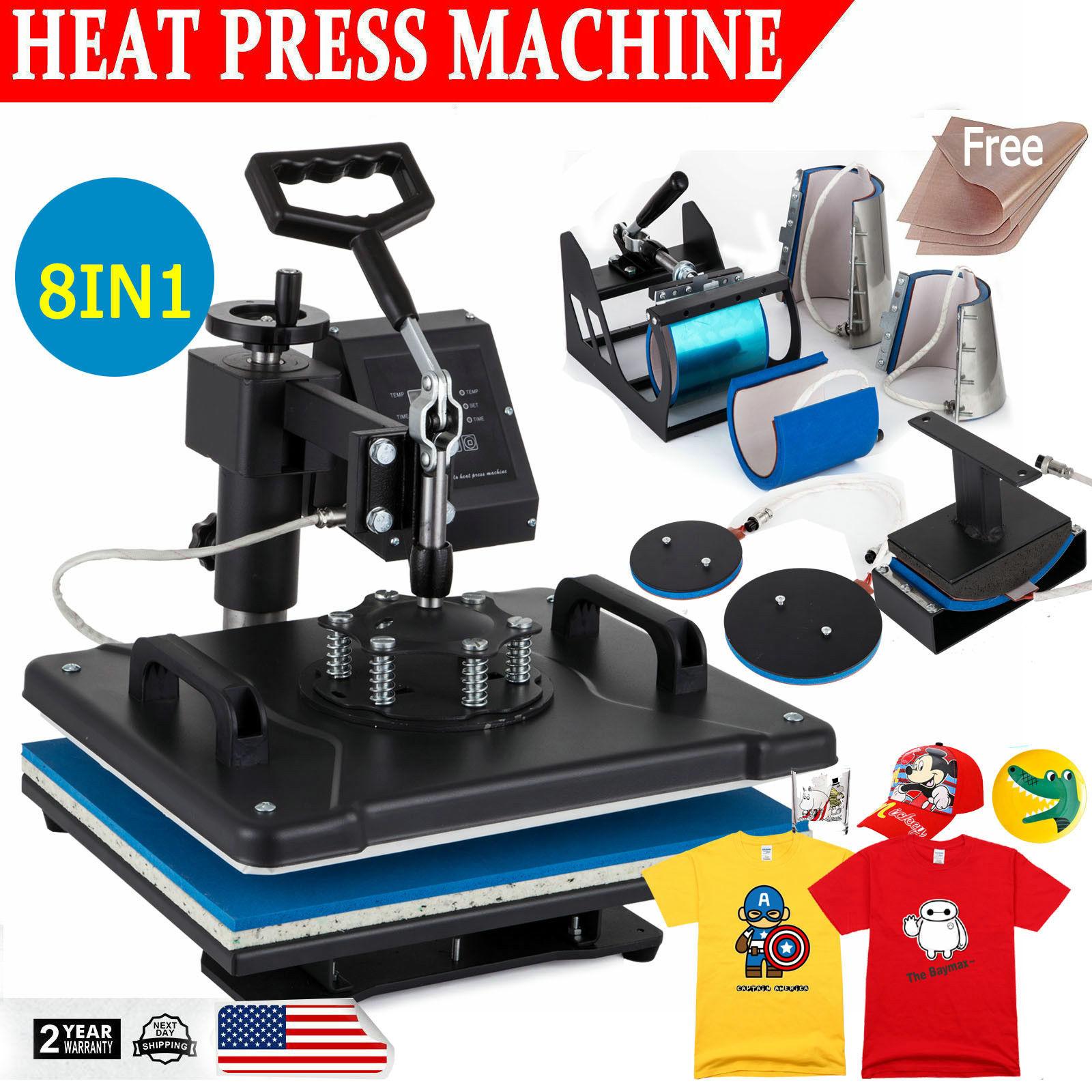 8 In 1 Heat Press Machine Digital Transfer Sublimation T Shirt Mug Hat Plate Cap Ebay