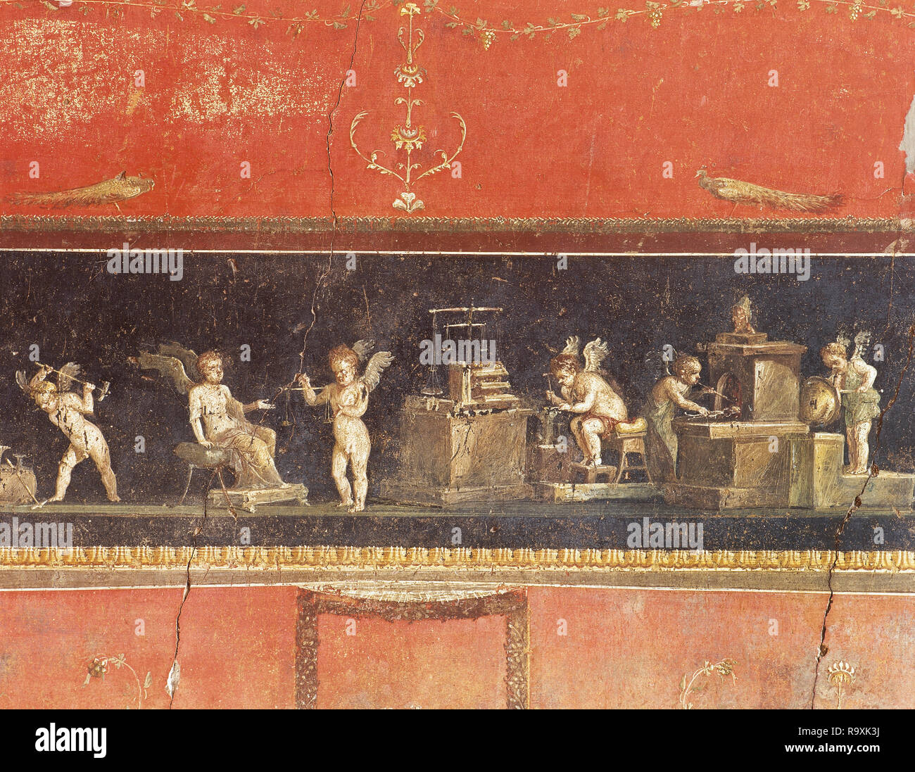 Italy Pompeii Triclinium Of The House Of The Vettii Frieze Of The Cupids Or Cherubs Painting Of Cupids Doing Goldsmith Work 1st Century Ad Campania Stock Photo Alamy