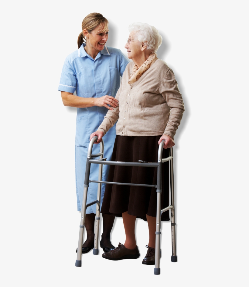 Caregiver Assist The Old Woman While Smiling Old Woman With Walker Png Png Image Transparent Png Free Download On Seekpng