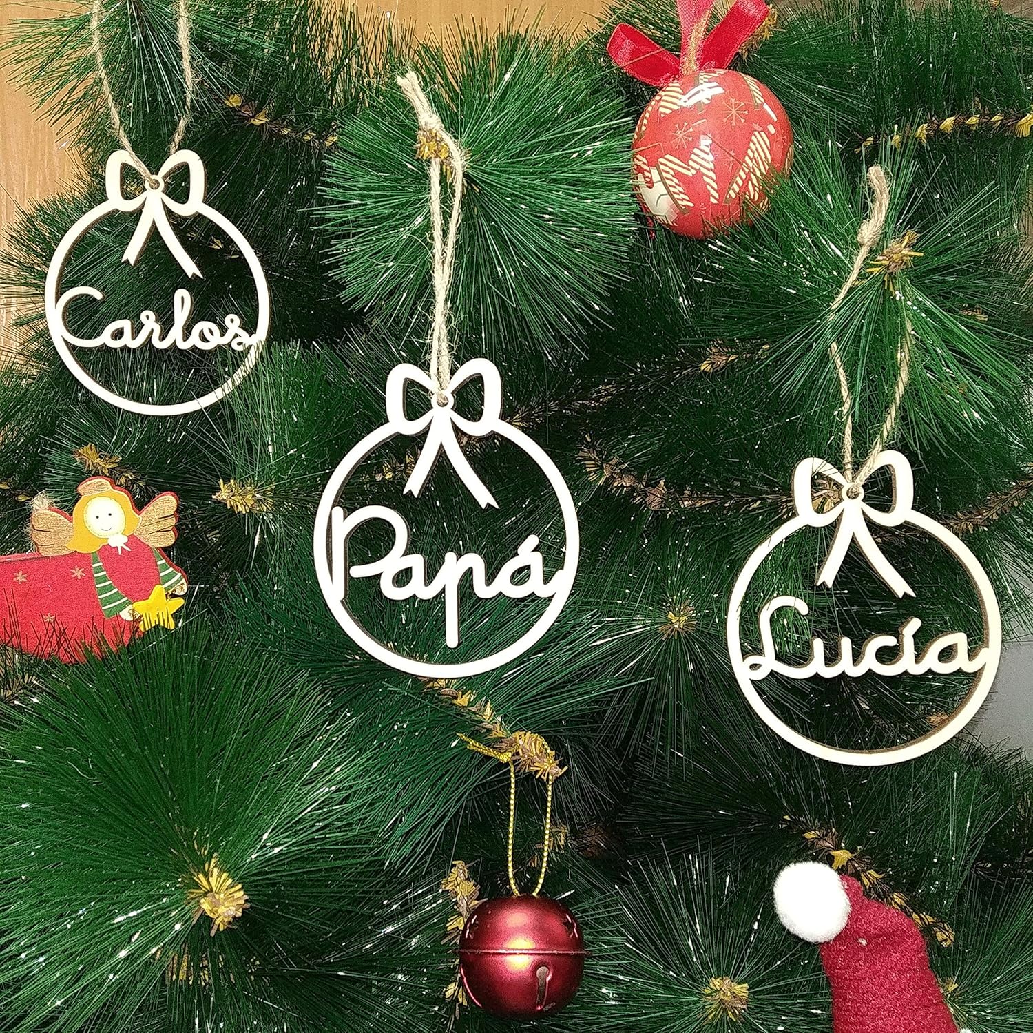 Bolas De Navidad De Madera Personalizadas Cordel Incluido Adornos Navidenos Ornamento Decoraciones Colgantes De Navidad Para El Arbol De Navidad Amazon Es Handmade