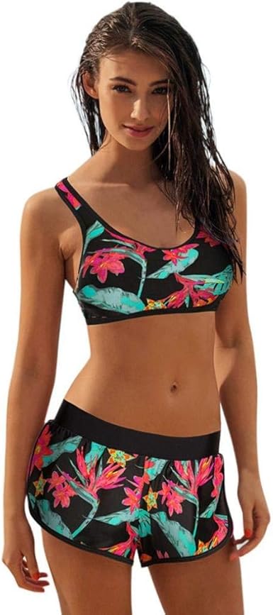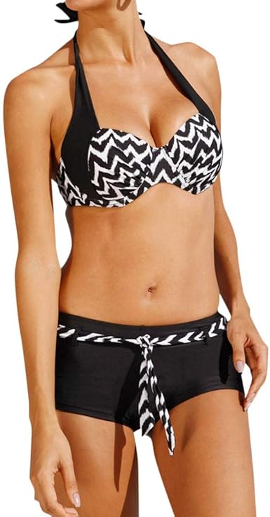 Amazon Com Zeffimore Bikinis De Mujeres Con Pantalones Cortos 2 Pieza Traje De Bano Plus Tamano Xl Negro Clothing