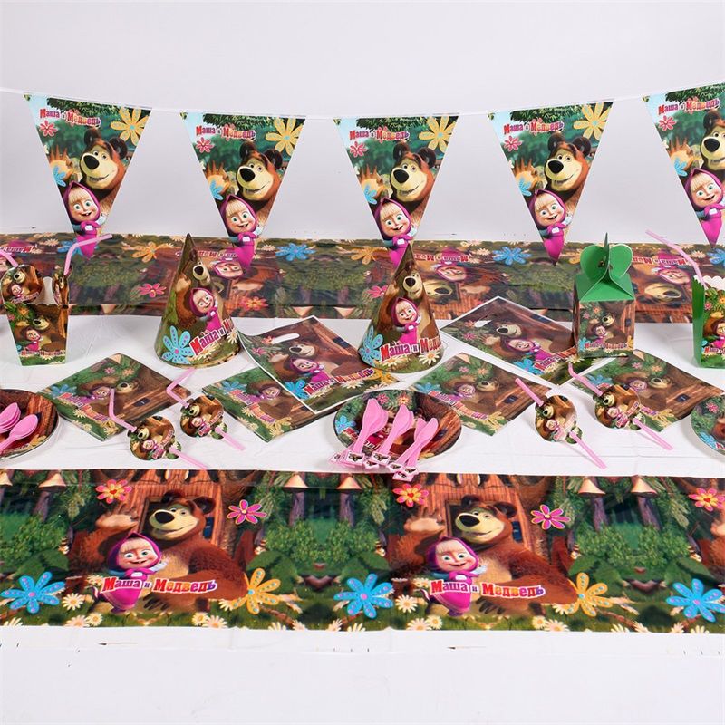 Compre 87 Unids Kid Decoracion De Cumpleanos Conjunto De Dibujos Animados Masha Y Oso Tema Decoracion Del Partido Platos Desechables Platos Taza Para Ninos Favores Suministros 22ec Yy A 8 37 Del
