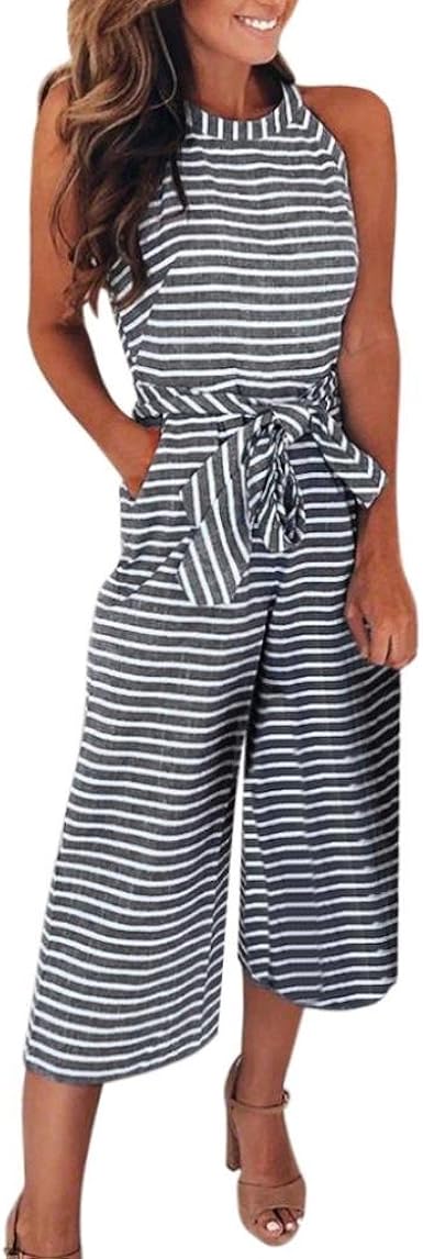 Monos Para Mujeres Dragon868 Casual Pantalon Ancho Sin Mangas De La Pierna Rayas Mujeres Mono Amazon Es Ropa Y Accesorios