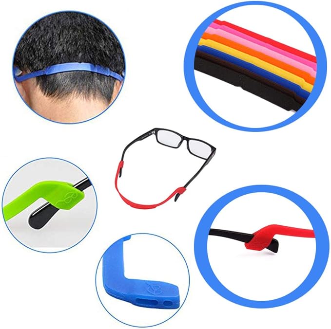 Rojo Amarillo Azul Verde Morado Negro Fodlon Cordones Para Gafas De Sol 6pcs Cordon Gafas Deporte Correa Gafas Silicona Antideslizante Para Mujer Hombre Nino Corriendo Jugar Futbol Baile Ciclismo Ropa Gafas Y