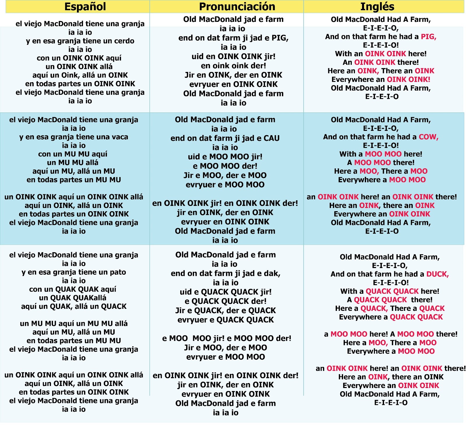 El viejo Mac Donald tenía una granja, IA IA OH y en esa granja tenía CERDOS, IA IA OH!con su OINC AQUÍ con su OINC ALLÁOINC AQUÍ, OINC ALLÁ siempre con su OI. C el viejo mcdonald tiene una granja, ia ia oh!. El viejo McDonald tiene una granja Publicado por Maluca en 23 EN INGLÉS;.