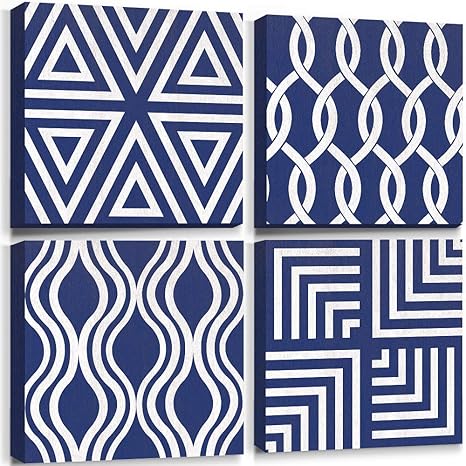Amazon Com Lamplig Azul Marino Decoracion Arte De Pared Geometrica Lineas Blancas Pinturas Minimalistas Modernas Cuadros Enmarcados Boho Estampados Abstractos Decoracion Para El Hogar Dormitorio Sala De Estar 12 0 X 12 0 In 4