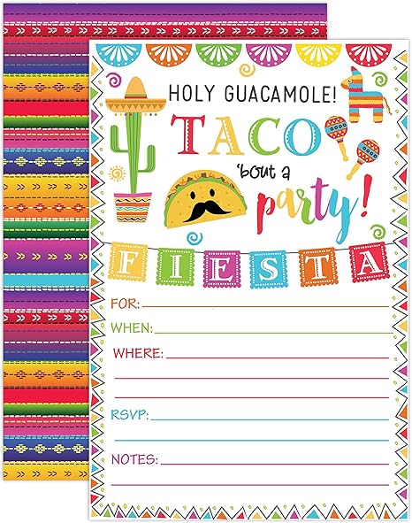 Amazon Com Fiesta Invitacion Fiesta Fiesta De Cumpleanos Invitacion Mexicana Fiesta De Cumpleanos Invitacion Taco Bout Un Twosday Para Tacos De Invitacion Para Fiestas Llenar En Invitaciones Con Sobres Kitchen Dining
