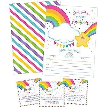 Amazon Com Invitaciones Para Fiesta De Cumpleanos Con Sobres De Arcoiris Invitacion Colorida Para Fiesta De Ninos 30 Tarjetas Con Sobres Toys Games