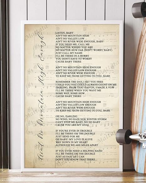 Amazon Com Mattata Decor Gift Ain T No Mountain High Enough Song Lyrics Sheet Music Portrait Poster Print 12 X 18 Kitchen Dining