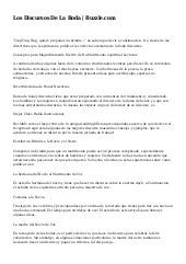 Celebrar la boda en un hotel, museo, estación de tren abandonada, en una casa de campo o en medio de la nada, las posibilidades son muchas y variadas. Este es el discurso que ha preparado Sofía para la boda de dos de sus mejores amigos La idea es que Sofía oficie una ceremonia ficticia e informal justo antes de que comience el banquete. Leer documento completo palabras de brindis para boda BOdaCómo discursar en una boda,ejemplos de discursos para recién casados,el discurso de una boda Se acerca el día de tu boda, la boda de tu hija (o), o de tu mejor amiga (o) y no sabes qué decir en la fiesta,.