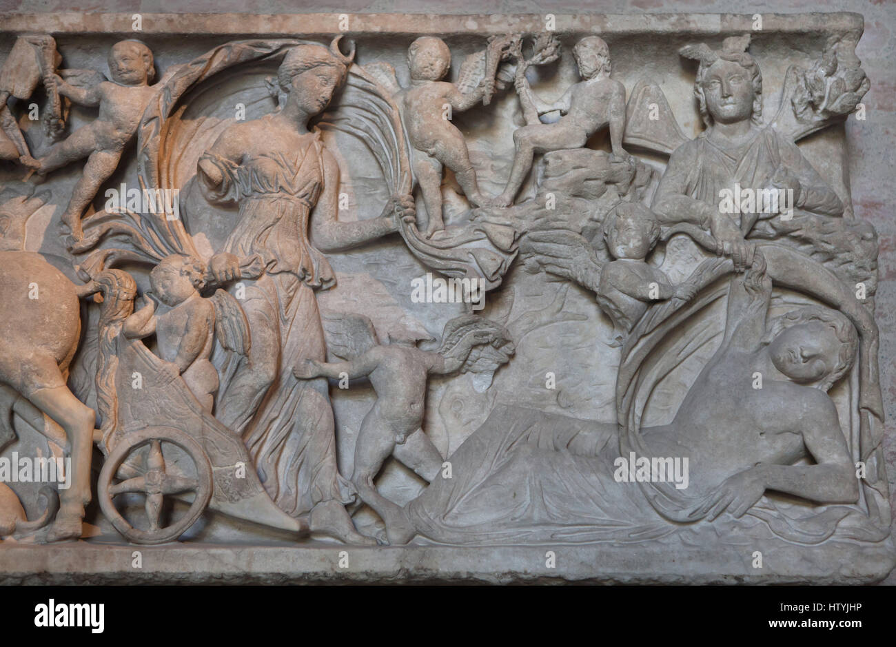 Selene Y Endymion En El Monte Latmus Cara Frontal De Un Sarcofago Romano Desde Unos 180 Ad En Exhibicion En El Museo Glyptothek De Munich Baviera Alemania La Diosa De La Luna