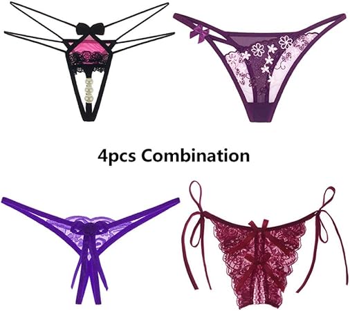 Lzlnk 4pcs Lot Tangas Con Cordones Sexy Ropa Interior De Mujer De Baja Altura Bragas Combinacion Extremadamente Sexy Tanga G Ahueca Hacia Fuera Calzoncillos Amazon Es Deportes Y Aire Libre