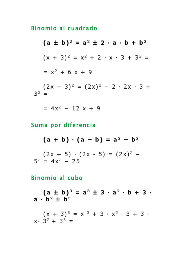Binomios Al Cubo Y Al Cuadrado Docsity