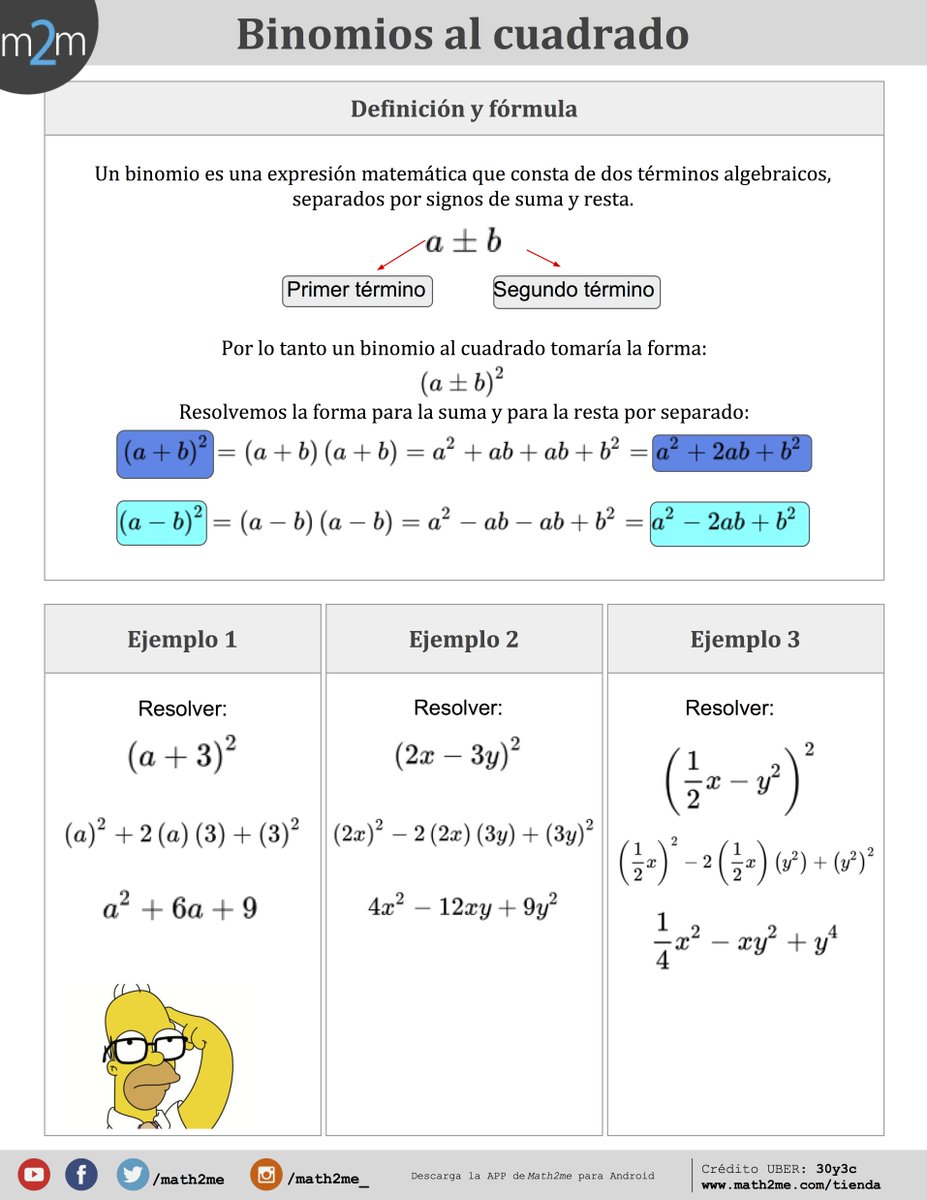 Math2me Guia Rapida De Matematicas 13 Binomios Al Cuadrado