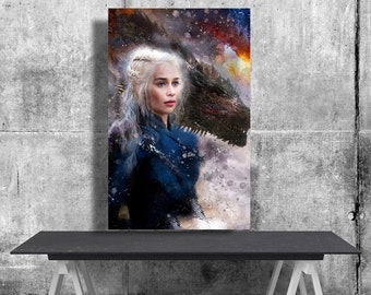 Daenerys And Drogon Framed Poster Print Canvas Art