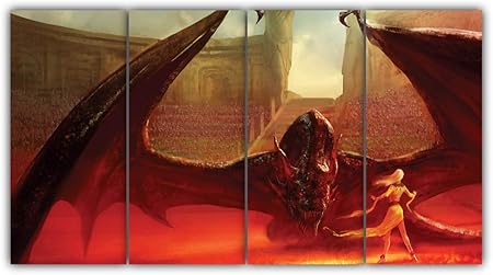 Amazon Com 4 Panels Daenerys Targaryen And Drogon Multi Canvas Art Dragon Game Of Thrones Dothraki Drogo Framed Ready To Hang Wall Poster Piece Print Home Decor Posters Prints