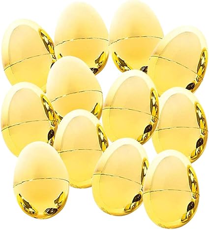 Amazon Com Huevos De Pascua Metalicos Dorados Pack De 12 Huevos De Pascua De Oro Brillante De 2 5 In De Plastico Vacios Para Rellenar Cesta De Pascua Tesoros De Pecho Juguete Novedoso